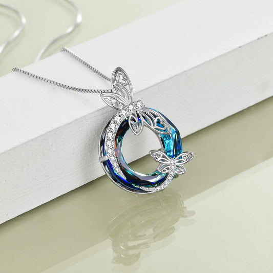 Christmas Gifts Sterling Silver Dragonfly Pendant Necklace with Purple Crystal Jewelry Christmas Gifts for Women